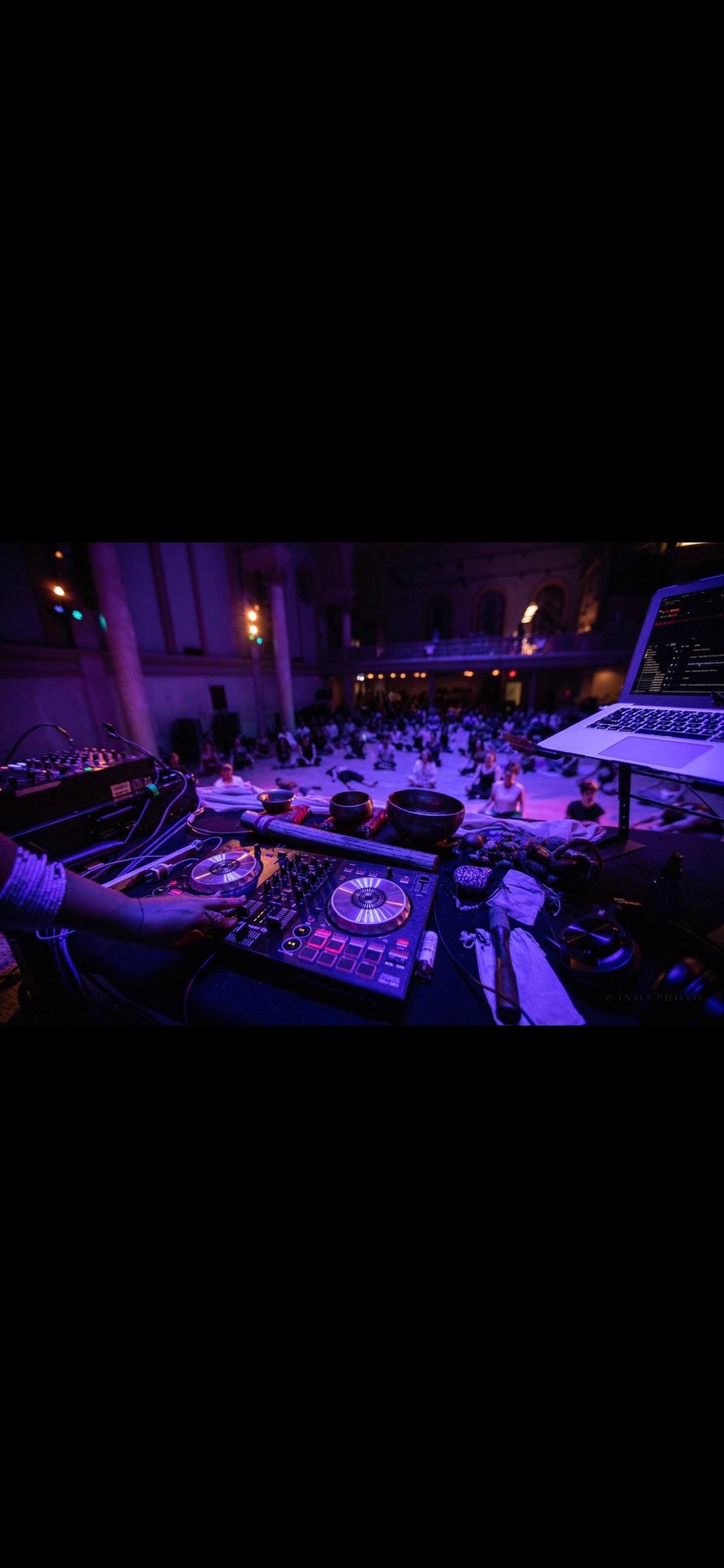 Our yoga sequences are designed to ground, stretch, strengthen, expand, align, OPEN and CONNECT you to your most present self; while an intentional soundtrack composed live harnesses the power of binaural beats, brainwave & sub-frequencies + natural soundscapes to shift and nurture states of being into deeper presence.
